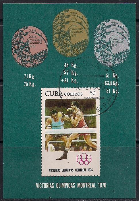 Куба 1976 год. Кубинские медалисты Олимпиады в Монреале. Гашеный блок