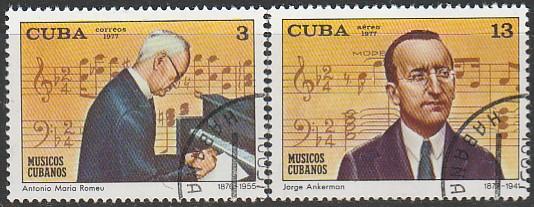 Куба 1977 год. Музыканты, 2 гашёные марки