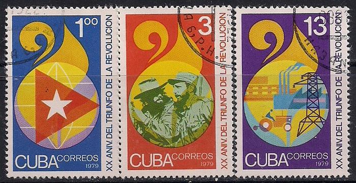 Куба 1979 год. 20 лет Кубинской революции. 3 гашеные марки