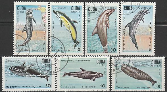 Куба 1984 год. Морские млекопитающие. 7 гашёных марок