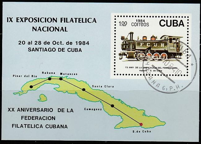 Куба 1984 год. Национальная филвыставка. Кубинская железная дорога, гашёный блок