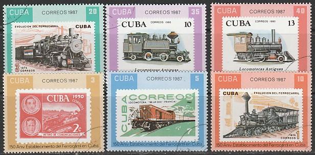Куба 1987 год. 150 лет кубинской железной дороге. 6 гашёных марок