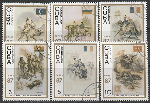 Куба 1987 год. Международная филвыставка "CAPEX-87" в Торонто. Развитие почты XIX века. 6 гашёных марок