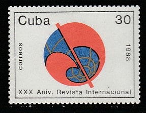 Куба 1988 год. 30 лет журналу "Проблемы мира и социализма". Символика, 1 марка (наклейка)