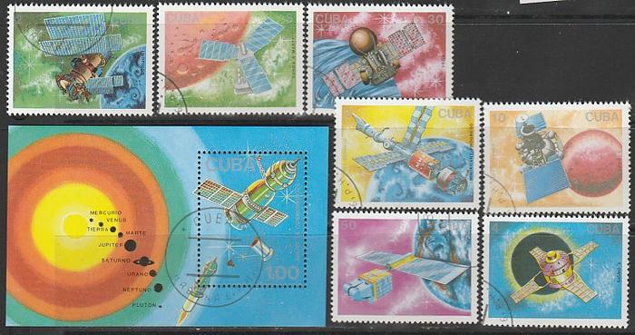 Куба 1988 год. День космонавтики. Спутники и космические корабли. 7 марок + блок (гашёные)