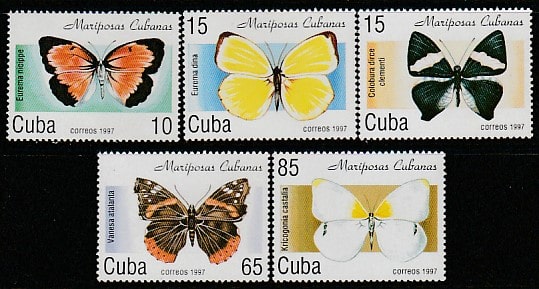 Куба 1997 год. Местные бабочки, 5 марок (н