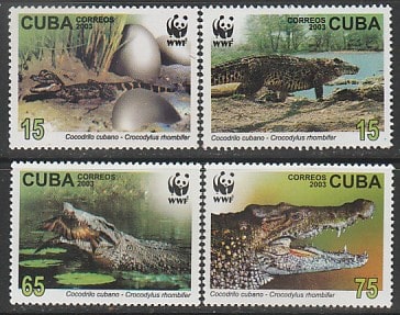 Куба 2003 год. WWF. Крокодилы, 4 марки. НАКЛЕЙКИ