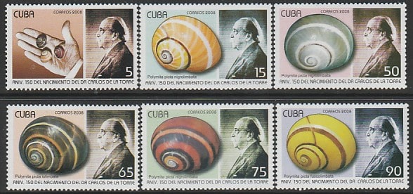 Куба 2008 год. 150 лет со дня рождения кубинского ученого - биолога Карлоса де ла Торре, 6 марок.