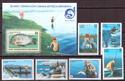 Куба 2009 год. Спортивная рыбалка. Рыбы. Рыболовство 6 марок и блок