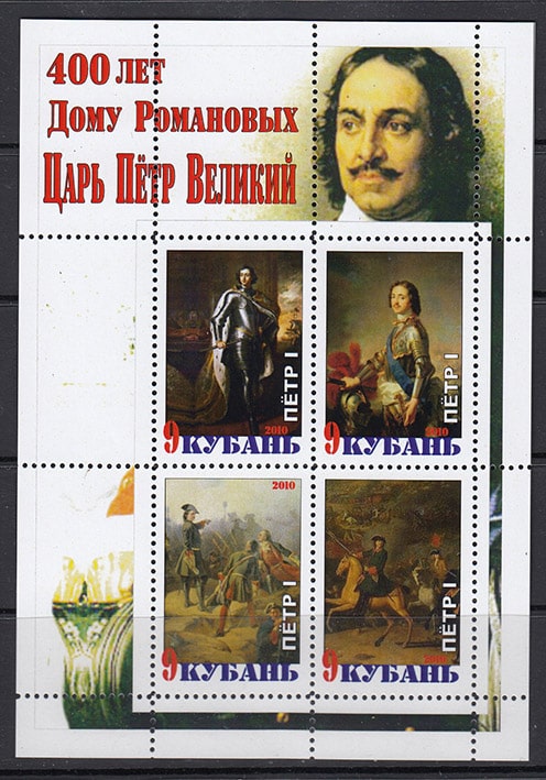Кубань 2010 год. 400 лет Дому Романовых, Царь Петр Великий, лист