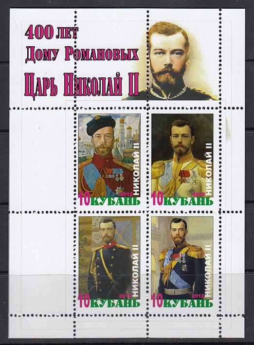 Кубань 2012 год. 400 лет Дому Романовых, Царь Николай II, лист
