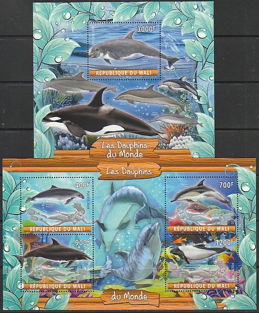 Купить Мали 2020 год. Дельфины, малый лист + блок.