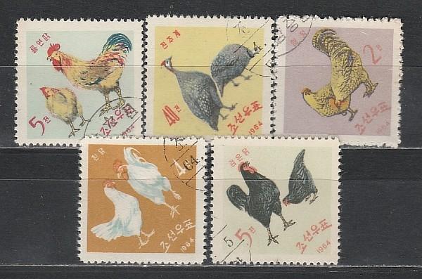 Куры и Петухи, КНДР 1964 год, 5 гашёных марок
