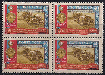 СССР 1957 год. казахская. Квартблок марок "40 лет Октября"