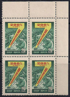 СССР 1959 год. Квартблок марок "Семилетний план". машино...