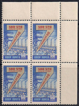 СССР 1959 год. Квартблок марок "Семилетний план" электро...