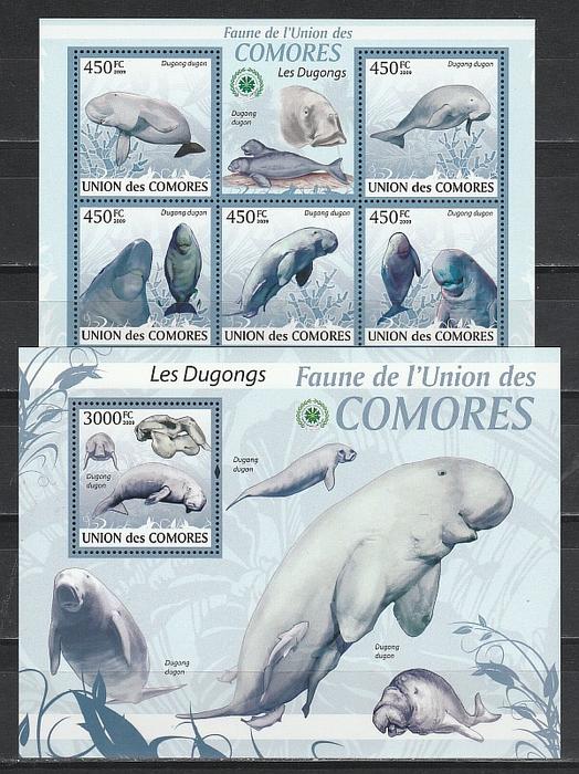 Ламантин, Коморы 2009 г, малый лист + блок