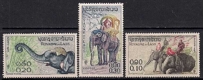 Лаос 1958 год. Слоны. 3 марки (неполная серия)