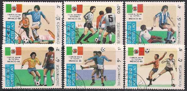 Лаос 1985 год. ЧМ по футболу в Мексике. 6 гашеных марок