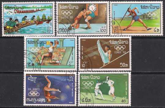 Лаос 1988 год. Летние Олимпийские игры в Сеуле. 7 гашеных марок