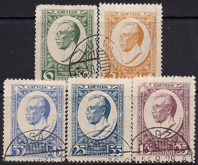 Латвия 1929 год. Фонд памятника латышскому министру З. Миеровицу. 5 гашёных марок
