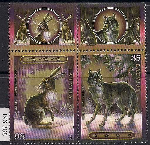 Латвия 2009 год. Фауна Латвии. Волк, заяц. 2 марки (196.368). БЕЗ ПОЛЕЙ