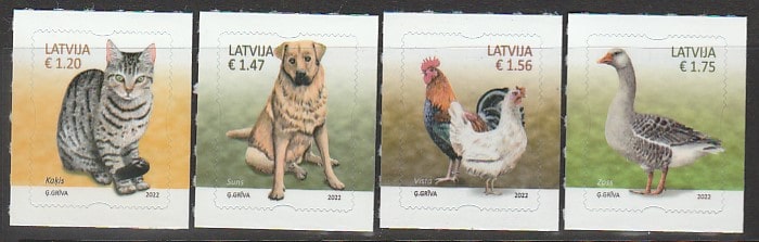 Латвия 2022 год. Домашние животные, 4 марки (самоклейка) (н