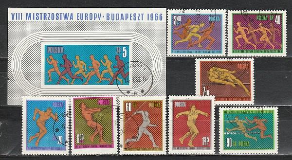 Легкая Атлетика, Польша 1966, 8 гаш. марок + блок