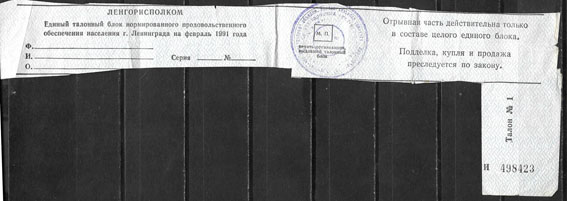 ЛЕНГОРИСПОЛКОМ, Единый талонный блок нормированного продовольственного обеспечения населения Ленинграда на февраль 1991 года
