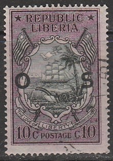 Либерия 1920 год. Государственный герб, ном. 10 С, НДП, 1 служебная марка из серии (гашёная)