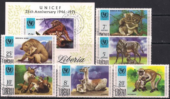 Либерия 1971 год. Фауна. 6 марок + блок (гашеные)