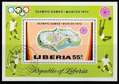 Либерия 1972 год. Олимпиада в Мюнхене. Стадион, блок (гашёный)