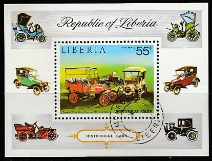 Либерия 1973 год. Исторические автомобили, блок (гашёный)