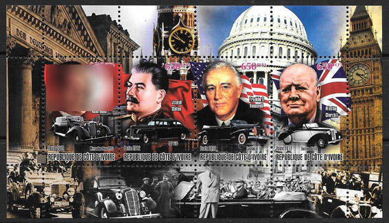 Лидеры стран участников Второй Мировой войны. Кот дИвуар 2012 г. Малый лист
