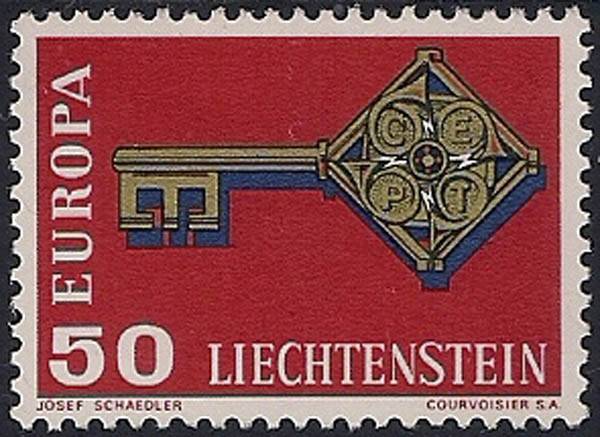 Лихтенштейн 1968 год. Европа СЕПТ. Эмблема в виде ключа.1 марка
