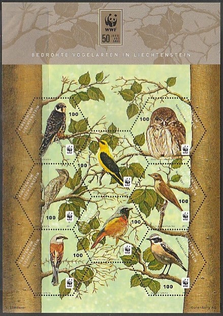 Лихтенштейн 2011 год. WWF. Исчезающие виды птиц, малый лист (н