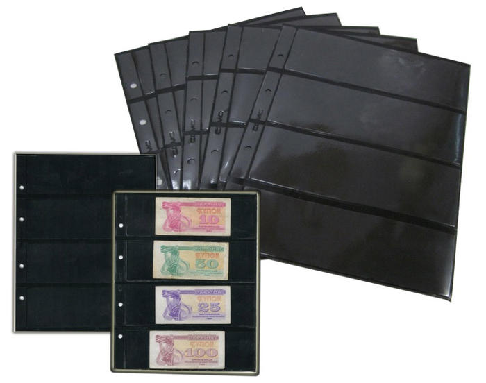 Лист для бон, открыток и фото 200х250 мм на чёрной основе на 4 ячейки 180х56 мм, формат "Optima", двухсторонний