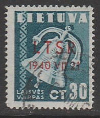 Литовская ССР 1940 год. Стандарт. Колокол мира, ном.30С, ндп, 1 марка из серии (гашёная)