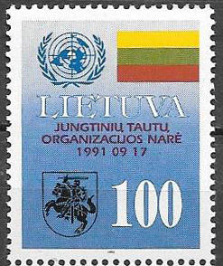 Литва 1992 год. Вступление Литвы в ООН, 1 марка
