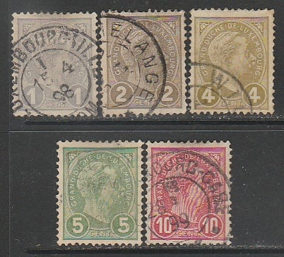 Люксембург 1895 год. Стандарт. Великий князь Адольф, 5 марок (гашёные) (30/2,5)