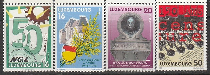Люксембург 1998 год. Ежегодные события. Шестерни. Замок, герб города. могильный столб. Борьба с цензурой, 4 марки.