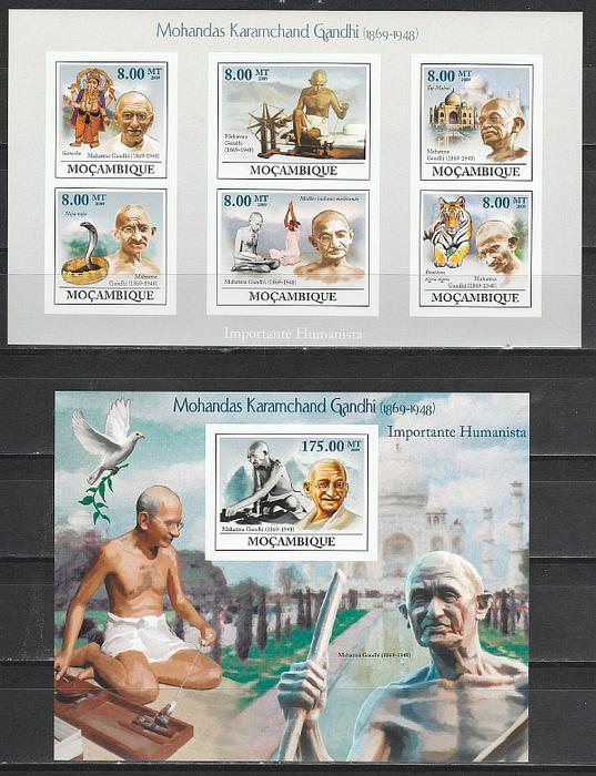 М. Ганди, Мозамбик 2009, малый лист + блок без зубцов