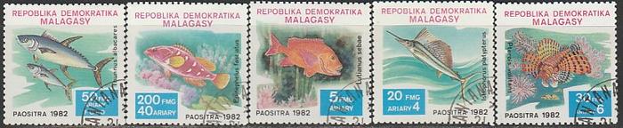 Мадагаскар 1982 год. Рыбы, 5 гашёных марок