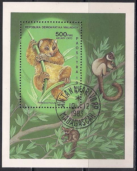 Мадагаскар 1983 год. Лемуры. 1 гашеный блок