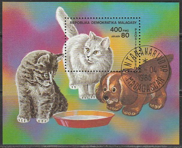 Мадагаскар 1985 год. Собаки и кошки, гашёный блок