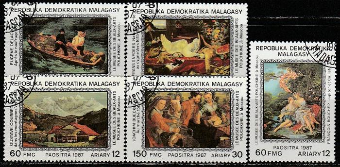 Мадагаскар 1987 год. Картины Пушкинского музея Москвы, 5 гашёных марок