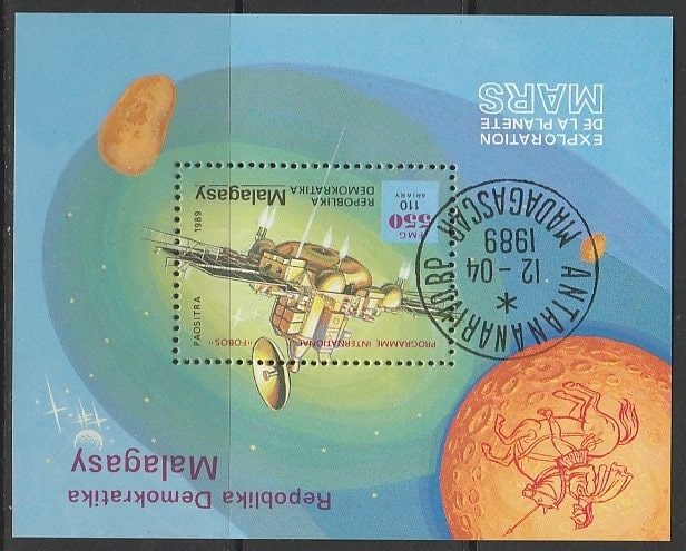 Мадагаскар 1989 год. Международная исследовательская программа Марса, блок (гашёный)