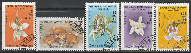 Мадагаскар 1989 год. Орхидеи, 5 марок (гашёные)