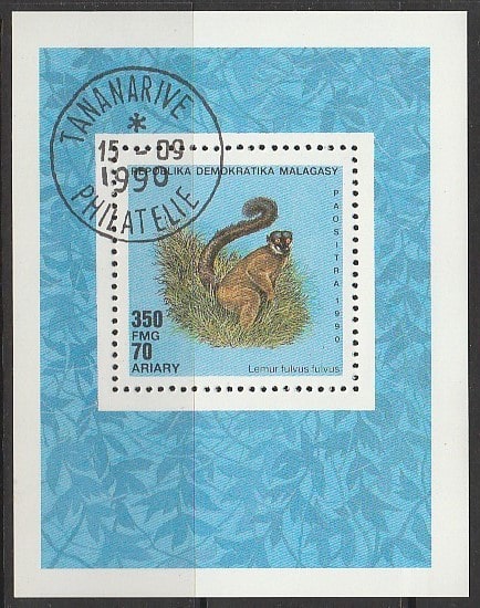 Мадагаскар 1990 год. Лемуры, блок (гашёный)