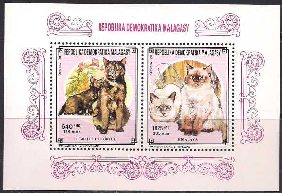 Мадагаскар 1991 год. Домашние животные. Кошки (208.1325). Блок